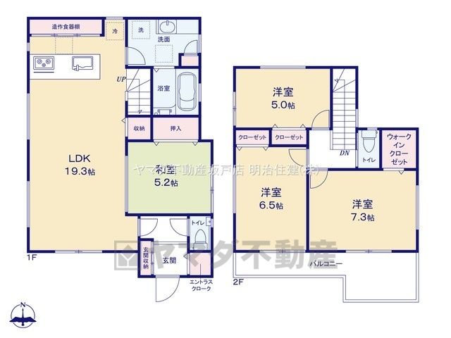 | 間取り詳細 | LDK19.3畳(1F)、和5.2畳(1F)、洋7.3畳(2F)、洋6.5畳(2F)、洋5畳(2F) | 都市計画 | 市街化区域 |