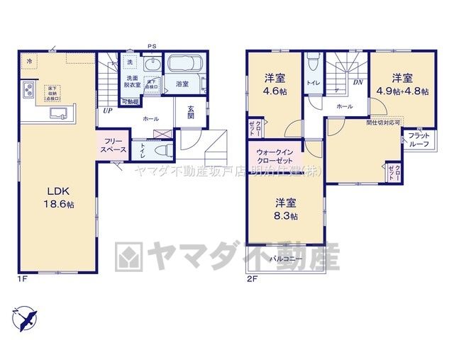 | 間取り詳細 | LDK18.6畳(1F)、洋9.7畳(2F)、洋8.3畳(2F)、洋4.6畳(2F) | 都市計画 | 市街化区域 |