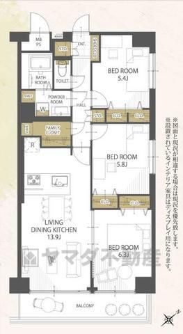 | 間取り詳細 | LDK13.9畳、洋6.3畳、洋5.8畳、洋5.4畳 | 土地権利 | 所有権 |