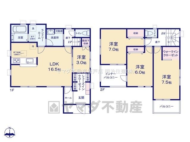 | 間取り詳細 | LDK16.5畳(1F)、洋3畳(1F)、洋7.5畳(2F)、洋7畳(2F)、洋6畳(2F) | 都市計画 | 市街化区域 |