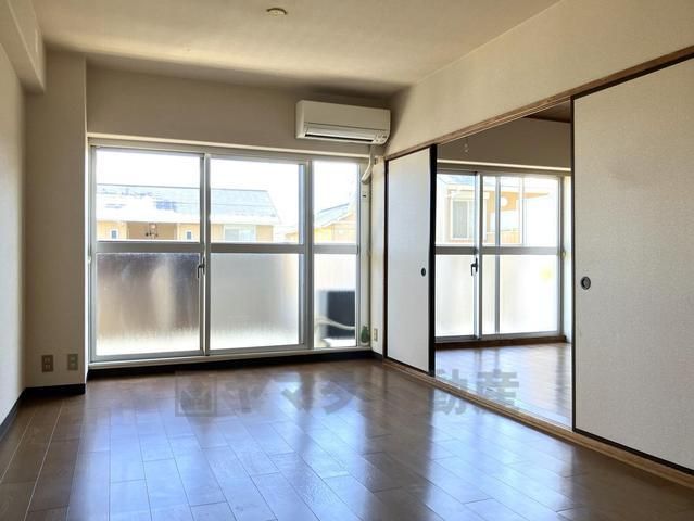 バルコニーに面した洋室は、大きな窓から自然光が入り込む明るい空間です。お洗濯物を干す際の移動も楽で、寝室や書斎として多目的に利用可能。風通しも良く、室内の空気の入れ替えがスムーズに行える、機能的な設計