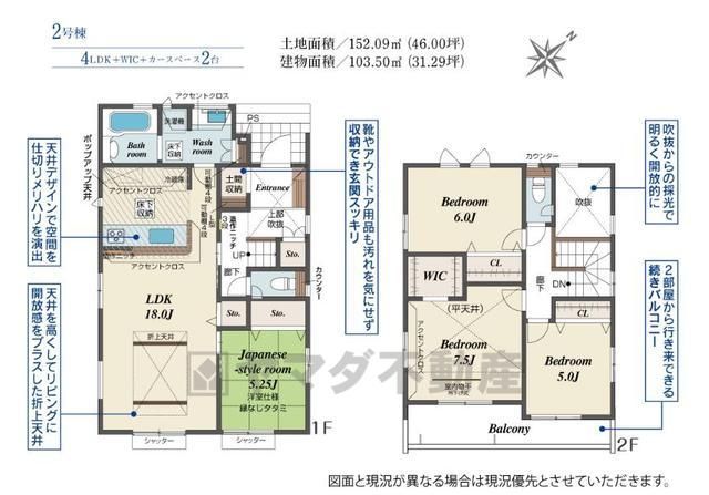 | 間取り詳細 | LDK18畳(1F)、和5.2畳(1F)、洋7.5畳(2F)、洋6畳(2F)、洋5畳(2F) | 都市計画 | 市街化区域 |