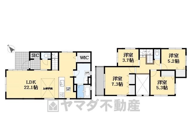 | 間取り詳細 | LDK22.1畳(1F)、洋7.3畳(2F)、洋5.3畳(2F)、洋5.2畳(2F)、洋3.7畳(2F) | 都市計画 | 市街化区域 |