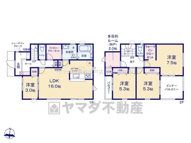 | 間取り詳細 | LDK16畳(1F)、洋3畳(1F)、洋7.5畳(2F)、洋5.3畳(2F) | 都市計画 | 市街化区域 |