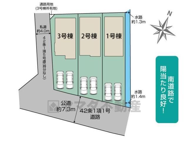| 土地面積基準 | 実測 | 接道 | 公道 南 幅員7.3m |