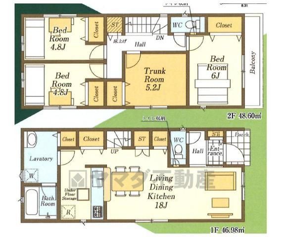 | 間取り詳細 | LDK18畳(1F)、洋6畳(2F)、洋4.8畳(2F)、S5.2畳(2F) | 都市計画 | 市街化区域 |