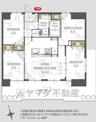| 間取り詳細 | LDK14.4畳、洋5.2畳、洋5.5畳、洋5.5畳、S6.3畳 | 土地権利 | 所有権 |
