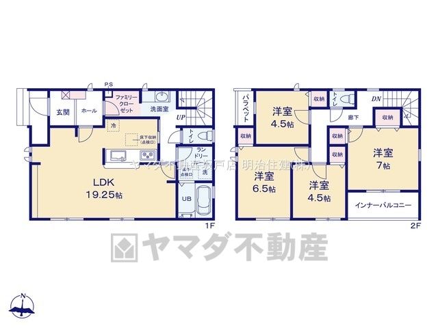 | 間取り詳細 | LDK19.2畳(1F)、洋7畳(2F)、洋6.5畳(2F)、洋4.5畳(2F) | 都市計画 | 市街化区域 |