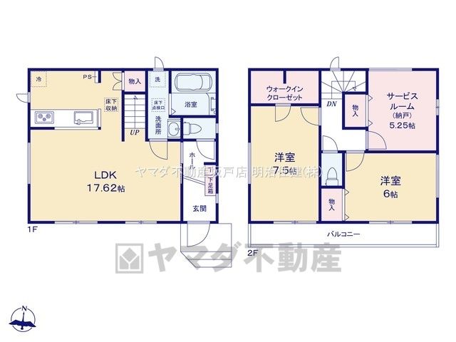 | 間取り詳細 | LDK17.6畳(1F)、洋7.5畳(2F)、洋6畳(2F)、S5.2畳(2F) | 都市計画 | 市街化区域 |